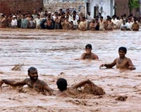Peshawar, Pakistan (AFP) Aug 4, 2008 At least 20 people were killed on Monday by flash floods in northwest Pakistan caused by heavy monsoon rains, officials said. Waters from a storm drain overflowed and hit dozens of villages in two areas near Peshawar, the capital of North West Frontier Province bordering Afghanistan. Officials said 1,000 houses were destroyed and 20 bodies have been recovered so far. "Ten people died in Bara (a tribal district) and 10 more were killed in suburban villages of Peshawar," district government official Ghulam Ahmed told AFP. Related Links Bringing Order To A World Of Disasters When the Earth Quakes A world of storm and tempest