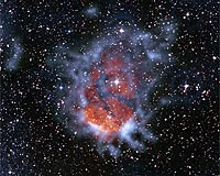 Paris, France (SPX) Nov 12, 2008 Illustrating the power of submillimetre-wavelength astronomy, an APEX image reveals how an expanding bubble of ionised gas about ten light-years across is causing the surrounding material to collapse into dense clumps that are the birthplaces of new stars. Submillimetre light is the key to revealing some of the coldest material in the Universe, such as these cold, dense clouds. The region, called RCW120, is about 4200 light years from Earth, towards the constellation of Scorpius. A hot, massive star in its centre is emitting huge amounts of ultraviolet radiation, which ionises the surrounding gas, stripping the electrons from hydrogen atoms and producing the characteristic red glow of so-called H-alpha emission. As this ionised region expands into space, the associated shock wave sweeps up a layer of the surrounding cold interstellar gas and cosmic dust. This layer becomes unstable and collapses under its own gravity into dense clumps, forming cold, dense clouds of hydrogen where new stars are born. However, as the clouds are still very cold, with temperatures of around -250 degrees Celsius, their faint heat glow can only be seen at submillimetre wavelengths. Submillimetre light is therefore vital in studying the earliest stages of the birth and life of stars. The submillimetre-wavelength data were taken with the LABOCA camera on the 12-m Atacama Pathfinder Experiment (APEX) telescope, located on the 5000 m high plateau of Chajnantor in the Chilean Atacama desert. Thanks to LABOCA's high sensitivity, astronomers were able to detect clumps of cold gas four times fainter than previously possible. Since the brightness of the clumps is a measure of their mass, this also means that astronomers can now study the formation of less massive stars than they could before. The plateau of Chajnantor is also where ESO, together with international partners, is building a next generation submillimetre telescope, ALMA, the Atacama Large Millimeter/submillimeter Array. ALMA will use over sixty 12-m antennas, linked together over distances of more than 16 km, to form a single, giant telescope. APEX is a collaboration between the Max-Planck-Institute for Radio Astronomy (MPIfR), the Onsala Space Observatory (OSO) and ESO. The telescope is based on a prototype antenna constructed for the ALMA project. Operation of APEX at Chajnantor is entrusted to ESO. Share This Article With Planet Earth