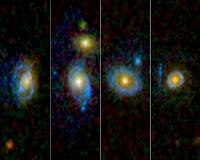 Giant Ultraviolet Rings Found In Resurrected GalaxiesPasadena CA (JPL) Aug 12, 2010 Astronomers have found mysterious, giant loops of ultraviolet light in aged, massive galaxies, which seem to have a second lease on life. Somehow these "over-the-hill galaxies" have been infused with fresh gas to form new stars that power these truly gargantuan rings, some of which could encircle several Milky Way galaxies. The discovery of these rings implies that bloated galaxies presume ... read more |
