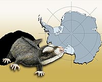Illustration: Restoration of the Early Triassic mammal-like reptile Thrinaxodon emerging from its Antarctic den. COPYRIGHT Jude Swales