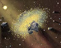 for Astrobiology Magazine New York NY (SPX) Aug 22, 2007 The prevailing theory of solar system formation was originally proposed by the philosopher Immanuel Kant in 1755. According to his nebular accretion theory, the solar system and other planetary systems formed by the condensation and accumulation of dust and gas in flattened disks of debris orbiting around young stars. The theory has found strong support in modern observations: Astronomers today routinely detect such debris disks around newborn stars. The dust-sized particles in such a disk first coagulate to form trillions of rocky asteroids and icy comets a few kilometers in diameter, called planetesimals. These objects in turn gently collide and grow to produce scores to hundreds of Moon- to Mars-sized bodies called planetary embryos, orbiting amid the swarm of remaining planetesimals. Some embryos in the outer parts of the disk grow large enough for their gravity to capture the abundant gas from the nebula, giving rise to giant planets. As long as the planetesimals retain most of the mass in the disk, their gravity locally exerts a damping effect (called dynamical friction) on the motion of the larger embedded embryos, and the whole system remains dynamically well behaved. The embryos grow by capturing material from so-called feeding zones in the disk, and their orbits become rather evenly spaced. But once the embryos have swept up most of the mass from the disk, the damping effect becomes too feeble to keep the system under control. The gravitational tugs that the embryos exert on one another can then pump up their orbital eccentricities without limit. At that point, to use the vernacular, all hell breaks loose. In this final stage of planet formation, the orbits of the planetary embryos begin to intersect, and the whole system erupts into large-scale anarchy. Entire worlds collide and merge, while others are flung capriciously out into the Galaxy. The observational evidence makes it clear that the worlds formed in the young solar system were subjected to intense bombardment, their surfaces being saturated with craters. Many of them are still covered with enormous impact scars. Some moons and asteroids look like they were entirely blown apart and reassembled from fragments. A Mars-sized planetary embryo evidently collided with and entirely melted the proto-Earth, explosively throwing off a great splash of debris, some part of which reassembled to form the Moon. As the growing planets swallowed up planetesimals from the debris disk, they were also ejecting countless others to great distances. Many of those objects had enough energy to escape to interstellar space, where they now drift between the stars. Others, flung without quite enough velocity to escape, reached the outermost fringes of the solar system, where the gravitational influence of nearby stars and the Galaxy itself could circularize their orbits. Hundreds of billions of these icy objects now populate the distant Oort cloud, loosely bound by the Sun's gravity. Some of them, further nudged by passing stars and galactic tides, re-enter the inner solar system as spectacular long-period comets. Theorists today use computer models to simulate the late stages of planetary formation. They can follow the dynamical evolution of such systems, using a range of starting conditions to represent different debris disks. Some of the simulations generate planets with orbits and masses that resemble those in our solar system. Others produce systems with giant planets in more eccentric orbits. In such simulations, collisions and ejections reduce the number of growing planets and increase the average spacing between them. The planets effectively compete for space, "elbowing" each other apart. These numerical experiments confirm that the formation of planets is exquisitely sensitive to initial conditions. For example, the displacement of only one in a hundred starting embryos along its orbit by only one meter, keeping everything else the same in a simulation, can make the difference between ending up with three terrestrial planets or five. Such results strongly suggest that a trivial chance encounter determined the very existence of the Earth. Astronomers are now getting the chance to check whether such simulations reflect reality. For more than a decade, they have been discovering and charting the configuration of other planetary systems, which were long assumed to exist. Planet hunters have already detected more than 240 worlds orbiting around other stars, more than 60 of them in systems having two or more known planets. So far, the observing techniques are limited to detecting giant planets, in most cases at least 10 times more massive than Earth. Smaller terrestrial planets undoubtedly exist around many of those stars, but current measurements cannot yet reveal them. Astronomers were surprised to learn that most of the known extrasolar planets have orbits much more eccentric than those of the giant planets in our solar system. It was generally assumed that the other systems would resemble our own, with planets in nearly circular orbits. Perhaps, some argued, our solar system is exceptional and most planetary systems were formed in a different way. This now looks unlikely. Mario Juric� and Scott Tremaine at Princeton University recently ran thousands of computer simulations to follow the dynamical evolution of 10 or more giant planets in a disk undergoing collisions, mergers and ejections. For simulations that begin with planets relatively close together, the ones that survive to the end have a distribution of orbital eccentricities that beautifully matches the data for the observed extrasolar planets. For simulations that begin with the planets farther apart, leading to fewer interactions, the surviving giant planets have lower orbital eccentricities, more like our own solar system. Most of the simulations end up with two or three giant planets, after the ejection of at least half 
