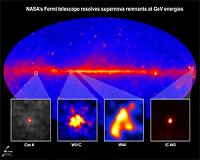 New images from NASA's Fermi Gamma-ray Space Telescope show where supernova remnants emit radiation a billion times more energetic than visible light. The images bring astronomers a step closer to understanding the source of some of the universe's most energetic particles - cosmic rays. Cosmic rays consist mainly of protons that move through space at nearly the speed of light. In their jou ... read more