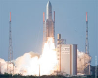 A smooth climb-out and on-target deployment sequence HOT BIRD 9 was installed in the upper position of Ariane 5's dual payload "stack," and it was deployed first during the mission sequence at approximately 27 minutes into the flight. The spacecraft was produced by EADS Astrium and carries 64 Ku-band transponders for the broadcast of digital and new high-definition TV channels, as well as interactive services. It will be located at Eutelsat's premium video neighborhood orbital slot of 13 deg. East, providing a coverage area extending throughout Europe, as well as to North Africa and the Middle East. The W2M satellite, which was carried in Ariane 5's lower passenger slot, was built by a European-Indian joint effort involving EADS Astrium and ANTRIX (the commercial arm of the Indian Space Research Organisation). This relay platform was separated from the launcher at just over 32 minutes into the flight. W2M will be positioned at an orbital slot of 16 deg. East, and is to provide both television and radio broadcasting services for Eutelsat. Accuracy of the flight was confirmed by the provisional orbital parameters at the injection of Ariane 5's cryogenic upper stage: Perigee: 249.7 km. For a target of 249.8 km. Apogee: 35,959 km. For a target of 35,954 km. Inclination: 3.99 degrees for a target of 4.00 degrees This evening's mission was the 42nd for Ariane 5, which made its first liftoff in 1996. Arianespace began commercial operations with the launcher on December 10, 1999. Following the successful launch, Le Gall confirmed that Arianespace is continuing to maintain its leadership by announcing the signature of two additional Service and Solutions orders: one with U.S. manufacturer Lockheed Martin Commercial Space Systems for the launch of Japan's BSAT-3c/JCSAT-110R; and the other with EADS Astrium to orbit the SSOT (Sistema Satelital para Observacion de la Tierra) Earth observation satellite for the government of Chile. "Thanks to the work of each and every member of the Ariane team, Arianespace remained the preferred launch company in 2008," Le Gall said. "This year is finishing very well, with our six Ariane 5 missions launching half of all the commercial satellites orbited worldwide in 2008; and Arianespace winning 12 of the total 16 contracts competed this year." Arianespace will continue its sustained launch pace in 2009, with the first flight in the New Year planned for February 12. This will use another heavy-lift Ariane 5 ECA version, and is to carry Eutelsat's HOT BIRD 10 along with the NSS-9 satellite for SES. In addition, the upcoming launch will orbit two Spirale auxiliary payloads - which are demonstrators for a space-based defense optical early warning system. Share This Article With Planet Earth