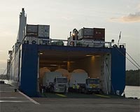 First Two Soyuz Launchers Arrive In French GuianaKourou, French Guiana (SPX) Nov 26, 2009 Arianespace has marked a historic milestone with the arrival of its first two Soyuz launchers in French Guiana, which will be used to inaugurate service with this medium-lift workhorse vehicle next year from the Spaceport. The Soyuz 2-1a launchers were carried aboard the MN Colibri roll-on/roll-off transport ship, which docked on schedule yesterday morning at Pariacabo port near Kourou ... read more |