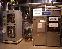 The fuel cells produce electricity and hot water through a chemical reaction between oxygen and hydrogen extracted from natural gas or other fuels.