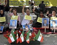 Supporters of Ashraf residents protest on August 6, 2009 in Berlin with a hunger strike since Iraqi security forces seized control of Camp Ashraf. Ashraf is the home of 3500 members of the People's Mujahedin of Iran (PMOI). Photo courtesy AFP.