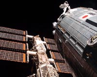 Washington (AFP) June 8, 2008 Astronauts from the Discovery shuttle completed the third spacewalk of the mission Sunday, putting more finishing touches on Japan's Kibo science lab and replacing an empty nitrogen tank. In another trouble-free day of the mission, Ron Garan and Mike Fossum checked off a list of maintenance tasks large and small over six hours and 33 minutes outside the orbiting space station, heading back inside at 2028 GMT. In the most dramatic moment of the walk, Garan -- his feet locked into the end of the ISS's massive Canadarm robotic arm like a puppet at the end of a rod -- was slowly swept from one side of the ISS to the other, carrying a 239 kilogram (528 pound) depleted nitrogen tank in his arms. "Light as a feather, huh?" Garan said as the arm, manipulated from inside the ISS by NASA astronaut Karen Nyberg, began moving him through the dark of space. "Enjoy the ride," Nyberg said. "That looked like fun," she added after the traverse was over. Besides replacing the nitrogen tank with a full one, the two spacewalkers removed a thermal cover from Kibo's robotic arm, brought up from Earth on the shuttle and installed earlier this week. They also tested cameras anchored outside the Kibo lab. ISS Flight Director Annette Hasbrook said at a press briefing after the spacewalk that one of the planned activities for Monday was a trial run of Kibo's robotic arm. "This will be the first large motion of the arm, so we'll just be watching to make sure that it's performing as expected and it's staying within the guidelines and constraints that the Japanese have laid out for the deploy," she said. Hasbrook added that Fossum during the spacewalk retrieved samples of a powdery substance from the left solar alpha rotary joint, which will be analyzed later by experts on the ground. "It could be expected debris, it could be something unusual," she said. "Until we get the data home, we really can't characterize what that is." It was the third and final spacewalk of the planned 14-day mission, begun when Discovery launched from Kennedy Space Center in Cape Canaveral, Florida on May 31. The principal job of the mission has been to deliver and install the Kibo lab's huge central pressurized module, along with its robotic arm. Astronauts completed that setup and also attached an earlier-delivered storage module to the new lab during the first two spacewalks. Kibo -- "Hope" in Japanese -- marks a huge advance in Japan's participation in the ISS, which already has units from NASA and the Russian and European space agencies, and key equipment from Canada as well. The 11.2-meter (36.7-feet) long pressurized module, with room for four astronauts to do research, is now the ISS's biggest single room. Installation was aided from inside the ISS by Japan Aerospace Exploration Agency astronaut Akihiko Hoshide, one of the seven astronauts who rode up on the Discovery. Earlier Sunday Hoshide told Japanese Prime Minister Yasuo Fukuda he was in awe of the view of the Earth from 338 kilometers (210 miles) in space. "Earth, as I see it from here, is very beautiful," he said, pointing out one of the round windows of the lab. "I think to myself it is so wonderful and fragile." Fukuda, amazed at how sharp the image was, said: "I can see you very clearly." "Maybe you can see my face getting dark, too," Hoshide replied, referring to the stubble on his chin. After the completion of the spacewalk Sunday, the astronauts have two days of rest and odd jobs before they are scheduled to undock Discovery from the orbiting station on Wednesday at 1142 GMT. The shuttle is set to return to the Kennedy Space Center on June 14 at 1513 GMT. Related Links Station at NASA Station and More at Roscosmos S.P. Korolev RSC Energia Watch NASA TV via Space.TV Space Station News at Space-Travel.Com