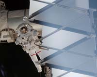 Washington (AFP) Oct 28, 2007 US astronauts completed the second of five spacewalks Sunday, shifting around a key piece of equipment but also finding a problem with mechanisms supporting an energy unit at the International Space Station. Damage was discovered in a joint supporting the station's solar arrays, a problem that NASA engineers will now have to solve. US astronaut Daniel Tani noticed metal shavings and unusual wear on part of a joint used to rotate the arrays, NASA officials said. "The joint has been showing some increased friction lately, and engineers are analyzing potential causes," the National Aeronautics and Space Administration said in a statement. The astronauts used an adhesive ribbon to collect scraps of metal debris which they will take back to Earth for analysis to find out the cause of the damage. "We have lots of time to work through this problem, it's not an immediate issue," ISS director Mike Suffredini told reporters on the ground Sunday. Meanwhile, mission commanders must decide if further inspections or repair work are needed during another space walk. The solar array was installed just four months ago. The second spacewalk started at 0932 GMT and finished at 1605 GMT, with space shuttle Discovery astronauts Tani and Scott Parazynski prepared for the installation Tuesday of a truss that will support a set of the station's key solar panels. The 16-tonne truss is the biggest piece of equipment yet to be moved around on the station on this latest mission to the ISS, during which the astronauts will perform a record five spacewalks totaling some 30 hours. The ISS, a giant manned laboratory orbiting 240 miles (390 kilometers) above Earth, is aimed to be a potential jumping-off point for further exploration of the solar system. The 100-billion-dollar space station, supported by 16 countries, is considered key to US ambitions to send a manned mission to Mars and is due to be completed within three years. During Sunday's walk, mission specialist Parazynski and Tani, a flight engineer, disconnected truss cables from the top of the station, where the huge item was installed temporarily in 2000. Then the spacestation'sroboticarm, operated by astronauts inside the ISS,movedit toanovernightparkingposition. It will be installed in a new spot on the ISS during further spacewalks over the coming days. The next spacewalk is scheduled for Tuesday morning. Astronauts will also complete theexternaloutfittingofthe Harmony module, a new compartment recently installed on the station. They earlier entered Harmony and began preparing it for its role in connecting two future laboratories to the station -- Japan's Kibo lab and the Colombus from Europe. "Harmony is a very good name for this module," said space station commander Peggy Whitson. "It represents the culmination of a lot of international partner work and will allow international partner modules to be added on." The 14-tonne, bus-size module was attached to the station during the first spacewalk of the mission on Friday. The current mission is making space exploration history as shuttle Commander Pam Melroy, 46, and Whitson, 47, are the first women to hold the reins of the two spacecraft at the same time. The shuttle is to be retired in 2010 to make way for Constellation, a new space exploration project that aims to put humans back on the moon by 2020. Related Links Station at NASA Station and More at Roscosmos S.P. Korolev RSC Energia Watch NASA TV via Space.TV Space Station News at Space-Travel.Com