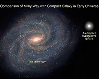 "One possibility is that we are looking at what will eventually be the dense central region of a very large galaxy," explains team member Marijn Franx of Leiden University in the Netherlands. "The centers of big galaxies may have formed first, presumably together with the giant black holes that we know exist in today's large galaxies that we see nearby."