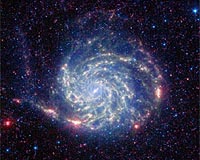 "If you were going look for life in Messier 101, you would not want to look at its edges," said Karl Gordon of the Space Telescope Science Institute in Baltimore, Md. "The organics can't survive in these regions, most likely because of high amounts of harsh radiation." To view Spitzer's Pinwheel, visit here.