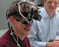 Paris, France (ESA) Sep 24, 2009 Life aboard the International Space Station is hard work. Crewmembers have a multiplicity of complex tasks, potentially involving thousands of tools, components and other items. But ESA astronaut Frank De Winne has begun testing the prototype of an unusual helper designed to make astronaut life easier. The ESA-designed Wearable Augmented Reality (WEAR) is a wearable computer system that incorporates a head-mounted display over one eye to superimpose 3D graphics and data onto its wearer's field of view. Controlled by voice for hands-free operation, WEAR includes onboard location and object identification to show astronauts precise information about what they are looking at, as well as providing step-by-step instructions to guide them through difficult, lengthy procedures. "At the moment, International Space Station (ISS) crews still use paper instruction manuals for many operational and maintenance tasks," explains Luis Arguello of ESA's Modelling and Simulation Section, overseeing the WEAR project. "Obviously, it's easier to perform a task while holding instructions in your hand. So we have developed a new type of user interface that is easier still, allowing astronauts to be guided precisely in their work without holding anything at all."