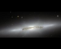 When targeting spiral galaxy bulges, astronomers often seek edge-on galaxies, as their bulges are more easily distinguishable from the disc. This exceptionally detailed edge-on view of NGC 4710 taken by the Advanced Camera for Surveys (ACS) aboard Hubble reveals the galaxy's bulge in the brightly coloured centre. The luminous, elongated white plane that runs through the bulge is the galaxy disc.