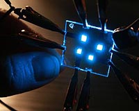Salt Lake City UT (SPX) Mar 27, 2009 Lighting consumes one-fifth of the electricity generated in the United States. Solid-state lighting offers tremendous potential to improve the situation - once major research challenges are overcome. The most promising technology is the organic light-emitting diode, or OLED. These multi-layered devices produce light by running an electrical current through a specially engineered host material into which light-producing phosphorescent molecules are embedded or "doped." The white light envisioned for large-scale applications, such as rooms and buildings, consists of red, green and blue light. "The weakest link in OLED research is the absence of an efficient, long-lasting blue light to accompany the red and green," said Pacific Northwest National Laboratory scientist Asanga Padmaperuma. Development of better host materials to manage the flow of electricity through the device could help solve that problem. Padmaperuma and his collegues have designed, synthesized and tested new materials that improve the power efficiency of blue OLEDs by at least 25 percent. On Sunday, March 22, PNNL scientists will discuss advancements in blue OLED research in two presentations and a poster session at the spring meeting of the American Chemical Society. Share This Article With Planet Earth