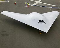 A full-scale model of Boeing's X-45C at the Farnborough International Air Show in 2004. The new Phantom Ray is to be based on this design. (Credit: Boeing)