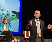 Langley VA (SPX) Jul 24, 2009 NASA Administrator Charles Bolden and Deputy Administrator Lori Garver addressed a standing-room-only crowd in Langley's Reid Conference Center on Wednesday, while another group of employees watched from a quarter-mile away at the Pearl Young Theater. Bolden spoke for 40 minutes about research, aeronautics, education, space and almost anything else anyone wanted to talk about. The people at Langley Research Center listened intently, and many heard the words of support they were waiting for from their new boss and his deputy. Garver noted that she has special affection for Langley because it is the only NASA center with a woman director. The director, Lesa Roe, introduced the two at the event. Questions from employees elicited thoughtful, sometimes unexpected answers. It was Bolden's first visit as NASA administrator to the place he repeatedly referred to as the "Mother Center." Several old friends Bolden knew from his 14-year career as a shuttle astronaut were present in the audience. Bolden remarked in response to one question that while any operation "is always at a crossroads...NASA is at a critical crossroads." "My vision is that we will find ways to do a little bit of all of the things that we need to do," he said. With answers come "challenges," which Bolden said he said he doesn't consider a politically correct synonym for "problems." NASA, he said, is about research. He described a third-grader's drawing that soon will be on his office wall in Washington; it says "We'll never know if we don't go." "That's why we do what we do," he said. "What we do is research and experimentation. We are a research organization, but we don't do enough R and D, basic research. I'll go down on my hands and knees if I need to, but we have got to find more money for you all to do basic research." Bolden interrupted building applause in the room and told the audience to wait for action instead of words. "It's easy for me to stand up here and say that," he noted. "You've got to back this stuff up." Bolden also asked for employees' assistance. "I need your help," he said, "because we're going to find ways to get back to basic research as well as applied research." NASA, he said, is about research, and Bolden harkened to a child's drawing that soon will be on his office wall in Washington. Lettered on that third-grader's art is "We'll never know if we don't go." After a questioner offered a possible solution to several project issues, Bolden challenged employees to have the courage of their convictions. He encouraged center directors to support and nurture that courage. In response to a question on the "10 healthy NASA centers philosophy," Bolden said he has spent time working at Langley as well as NASA's Johnson Space Center, Marshall Space Flight Center and Goddard Space Flight Center. Visits to other field centers will come soon. "You never make an assessment or a judgment about how everything is working until you have a chance to see it," he said. "It appears to be working." In response to a query about the cost of industry's use of NASA facilities, Bolden said he hoped to convene a summit of the major players in the aerospace industry. "I want to ask, 'Are we of value to you?' " he said. "And I want to ask, 'Do you respect us as a partner in aeronautical research?' " Bolden sees a role of government as fostering aeronautical research. Bolden took the job, he said, because President Obama asked him to. "He [Obama] talked of sitting on his grandfather's shoulders in Hawaii, watching the ships come in with astronauts on them and stuff," Bolden said. "He remembers waving, and in his mind, the astronauts could see him. He says he's never forgotten that, and he feels that kids don't feel that way these days." The challenge is to get that feeling back. Bolden took a step in that direction Wednesday, stopping to talk with students in DEVELOP, a Science Mission Directorate applied sciences training and development program that extends NASA research to local communities. He later walked unannounced into a classroom of children in the Navigation Center. It was the twelfth NASA administrator, doing his job, answering the president's challenge. Share This Article With Planet Earth