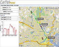 The CarTel web portal, showing a trip taken by one driver and accompanying data. Photo courtesy Balakrishnan/Madden Labs.