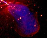 Hatfield UK (SPX) Apr 22, 2009 A survey by the Chandra X-ray observatory has revealed in detail, for the first time, the effects of a shock wave blasted through a galaxy by powerful jets of plasma emanating from a supermassive black hole at the galactic core. The observations of Centaurus A, the nearest galaxy that contains these jets, have enabled astronomers to revise dramatically their picture of how jets affect the galaxies in which they live. The results will be presented on Wednesday 22nd April at the European Week of Astronomy and Space Science in Hatfield by Dr. Judith Croston of the University of Hertfordshire. A team led by Dr. Croston and Dr. Ralph Kraft, of the Harvard-Smithsonian Center for Astrophysics in the USA, used very deep X-ray observations from Chandra to get a new view of the jets in Centaurus A. The jets inflate large bubbles filled with energetic particles, driving a shock wave through the stars and gas of the surrounding galaxy. By analyzing in detail the X-ray emission produced where the supersonically expanding bubble collides with the surrounding galaxy, the team were able to show for the first time that particles are being accelerated to very high energies at the shock front, causing them to produce intense X-ray and gamma-ray radiation. Very high-energy gamma-ray radiation was recently detected from Centaurus A for the first time by another team of researchers using the High Energy Stereoscopic System (HESS) telescope in Namibia. "Although we expect that galaxies with these shock waves are common in the Universe, Centaurus A is the only one close enough to study in such detail," said Dr. Croston. "By understanding the impact that the jet has on the galaxy, its gas and stars, we can hope to understand how important the shock waves are for the life cycles of other, more distant galaxies." The powerful jets are found in only a small fraction of galaxies but are most common in the largest galaxies, which are thought to have the biggest black holes. The jets are believed to be produced near to a central supermassive black hole, and travel close to the speed of light for distances of up to hundreds of thousands of light years. Recent progress in understanding how galaxies evolve suggests that these jet-driven bubbles, called radio lobes, may play an important part in the life cycle of the largest galaxies in the Universe. Energetic particles from radio galaxies may also reach us directly as cosmic rays hitting the Earth's atmosphere. Centaurus A is thought to produce many of the highest energy cosmic rays that arrive at the Earth. The team believe that their results are important for understanding how such high-energy particles are produced in galaxies as well as for understanding how massive galaxies evolve. The results of this research will be published in a forthcoming issue of the Monthly Notices of the Royal Astronomical Society. Share This Article With Planet Earth
