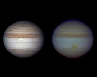 Jupiter's "kissing red spots" photographed by Alan Friedman of Buffalo, NY, using a 10-inch telescope.