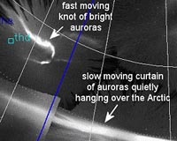 "Our jaws dropped when we saw the movies for the first time," says space scientist Larry Lyons of UCLA, a leading member of the team that made the discovery. "These outbursts are telling us something very fundamental about the nature of auroras." The collisions occur on such a vast scale, isolated observers on Earth with limited fields of view had never noticed them before. It took a network of sensitive cameras spread across thousands of miles to get the big picture.