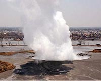 Durham, UK (SPX) Nov 04, 2008 A resounding vote of international petroleum geologists from around the globe concluded that the mud volcano was triggered by drilling of a nearby gas exploration well. This may have implications for compensation of the local population affected. Lusi started to erupt in East Java, Indonesia, on May 29th 2006, and is still spewing huge volumes of boiling mud over the surrounding area. It has displaced around 30,000 people from their homes and swamped 12 villages. The cause of Lusi was considered at a debate this week at an International conference in Cape Town, South Africa, which concluded with a vote between 74 world-leading petroleum scientists who considered the evidence presented by four experts in the field*. Some 42 scientists voted that gas exploration well, Banjar-Panji-1, which was being drilled by oil and gas company called Lapindo Brantas, was the cause. only 3 scientists voted for the alternative explanation - that the Yogyakarta earthquake two days before the eruption, whose epicentre was 280km from the mud volcano, was the cause. Some 16 scientists voted that the evidence was inconclusive and 13 that a combination of earthquake and drilling were the cause. The vote, taken this week at the American Association of Petroleum Geologists Conference in South Africa*, follows months of scientific investigation and analysis published by some of the world's leading experts in their field. Key reasons supporting drilling rather than the earthquake as the cause include: + the earthquake was too small and too far away to have had a role. + the well was being drilled at the same time and only 150 m from the volcano site. + the well took a huge influx of fluid the day before the eruption, resulting in pressures that the well could not tolerate. the pressure measured in the well after the influx provides strong evidence that the well was leaking and even evidence for the initial eruption at the surface. one of the speakers, leading geologist Professor Richard Davies of Durham University, UK, commented: "The conference allowed us to present new data on the pressures in the well the day before the eruption and these provide a compelling tape recording of the well as it started to leak.'' "We were particularly grateful to Lapindo, the company involved in the drilling, who were widely applauded at the meeting for their willingness to take part in the discussion." Prof Davies added: "I remain convinced that drilling was the cause of the mud volcano. The opinion of the international scientists at the event in South Africa adds further weight to my conviction and the conclusions of many other leading scientists who have studied Lusi." Susila Lusiaga a drilling engineer and part of the Indonesian police investigation team said: "There is no question, the pressures in the well went way beyond what it could tolerate - and it triggered the mud volcano." Michael Manga, Professor of Earth and Planetary Science at the University of California, Berkeley, said: "The key observation from an earthquake perspective is that there were many much larger and quite a bit closer earthquakes that did not trigger an eruption'. "The Yogyakarta earthquake was simply too small and too far away to initiate an eruption." Lusi is still flowing at 100,000 cubic metres per day, enough to fill 53 olympic swimming pools. Recent research by Durham University UK, and the Institute of Technology Bandung in Indonesia, showed Lusi is collapsing by at about 13 m per year and sometimes 3 m overnight and could subside to depths of more than 140 metres, having a significant environmental impact on the surrounding area for years to come. Related Links Durham University Bringing Order To A World Of Disasters When the Earth Quakes A world of storm and tempest