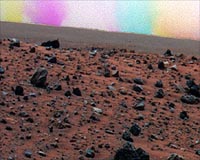 Mars Dust Devil Has Colorful Effect In Image SeriesPasadena CA (SPX) Jul 15, 2009 Scientists have combined a trio of shots taken seconds apart through different colored filters to create a special-effects portrait of a moving dust devil on Mars. The panoramic camera on NASA's Mars Exploration Rover Spirit was taking exposures through different filters during the 1,919th Martian day of Spirit's mission (May 27, 2009) as part of constructing a large color panorama. ... read more |