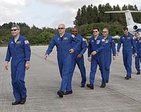 Cape Canaveral FL (SPX) Feb 05, 2008 The crew of space shuttle Atlantis flew to NASA's Kennedy Space Center on Monday in preparation for the launch of the STS-122 mission at 2:45 p.m. EST on Thursday. "We're very happy about the condition of Atlantis," mission commander Steve Frick said. Frick noted the work of NASA and contractor specialists throughout the agency's space flight centers for modifying a connector in the external tank's engine cutoff low-level fuel sensor system. "The technicians, the engineers, I think they are the best there are," he said. The countdown to Thursday's liftoff is to begin today at 5 p.m. "Atlantis is ready to go fly," said Charlie Blackwell-Thompson, assistant NASA Test Director. Frick said the crew would keep its eyes on the weather, too, following a forecast calling for a 40 percent chance of acceptable conditions at launch time. There had been concern about a flexible cooling system hose in Atlantis' payload bay. Technicians used a special tool to guide the hose back into its storage box while the payload bay doors were closed. "It pretty much went to plan," Blackwell-Thompson said. "We didn't have any issues at all." Related Links STS-122 at NASA Shuttle at NASA Watch NASA TV via Space.TV Space Shuttle News at Space-Travel.Com