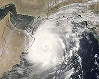 Greenbelt MD (SPX) Jun 07 - The formation of tropical cyclones in the Arabian Sea is rare, but as Tropical Cyclone Gonu is proving, just because these storms are rare doesn't mean that they can't be powerful. This image of Cyclone Gonu, as it churned in the northern Indian Ocean basin, was captured on June 4, 2007 by the Moderate Resolution Imaging Spectroradiometer (MODIS) on NASA's Aqua satellite. Oman is to the left of the storm, and Iran and Pakistan are to its north. By June 5, 2007, the intense storm had reached a dangerous Category 4 status, with sustained winds measuring 155 miles per hour, according to the University of Hawaii's Tropical Storm Information Center. Gonu is the strongest storm to hit the Arabian Peninsula since record keeping began more than 60 years ago, according to news reports.