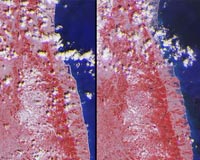 The extent of inundation from the destructive and deadly tsunami triggered by the March 11, 2011, magnitude 8.9 earthquake centered off Japan's northeastern coast about 130 kilometers (82 miles) east of the city of Sendai is revealed in this before-and-after image pair from the Multi-angle Imaging SpectroRadiometer (MISR) instrument on NASA's Terra spacecraft. The new image, shown on the r ... read more