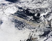 The Eyjafjallajokull volcano in Iceland erupted Wednesday, April 14, for the second time this month. The volcano is still spewing ash into the air and the ash clouds are impacting air travel in Northern Europe. NASA's Terra satellite flew over the volcano the following day at 11:35 UTC (7:35 a.m. EDT) on April 15, 2010, and the Moderate Resolution Imaging Spectroradiometer, or MODIS instru ... read more