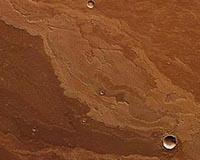 Lava Flows In Daedalia PlanumBonn, Germany (SPX) Oct 12, 2009 The High-Resolution Stereo Camera (HRSC) operated by the German Aerospace Center (Deutsches Zentrum fur Luft- und Raumfahrt; DLR) on board the European Space Agency's Mars Express orbiter imaged Daedalia Planum, a sparsely cratered, untextured plain on the Red Planet, featuring solidified lava flows of varying ages. Daedalia Planum lies to the southeast of Arsia Mons, one of the largest ... read more |