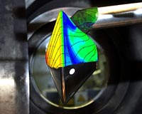 Hotter than the Sun After a steel membrane bursts, a strong impulse wave compresses and heats the carbon dioxide before it is accelerated into a wind tunnel jet at 4.4 kilometres per second. This corresponds to almost 16,000 kilometres per hour. Then, the gas flows around a model of the landing capsule. This scenario simulates the flight situation of the capsule in Mars' atmosphere at a height of 40 kilometres above the planet's surface. In the process, temperatures of 6000 degrees Celsius are generated in the test system - hotter than the surface of the Sun. "When observing the experiment, we use a phenomenon that everyone knows: the flickering of the air over a hot street in summer", explains Dr Jan Martinez Schramm, who is leading the experiment. As a result of this heating, the density of the gas changes - and so too does the way in which light is refracted. The scientists in Gottingen can draw conclusions about the variations in density, known as schlieren, from the 'flickering' of the gas in the wind tunnel. They have defined one especially critical point on the Mars capsule: the rear. "This is the point where stalling and very high thermal loads can occur", says Dr Hannemann.