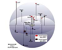 Mauna Kea HI (SPX) Sep 13, 2007 Mauna Kea scientists may have solved a discrepancy between the number of extremely small, faint galaxies predicted to exist near the Milky Way and the number actually observed. In an attempt to resolve the "Missing Dwarf Galaxy" problem, two astronomers used the W. M. Keck Observatory to study a population of the darkest, most lightweight galaxies known, each containing 99% dark matter. The findings suggest the "Missing Dwarf Galaxy" problem is not as severe as previously thought, and may have been solved completely. "It seems that very small, ultra-faint galaxies are far more plentiful than we thought," said Dr. Marla Geha, co-author of the study and a Plaskett Research Fellow at the Herzberg Institute of Astrophysics in Canada. "If you asked me last year whether galaxies this small and this dark existed, I would have said no. I'm astonished that so many tiny, dark matter-dominated galaxies have now been discovered." The Missing Dwarf Galaxy puzzle comes from a prediction of the "Cold Dark Matter" model, which explains the growth and evolution of the universe. It predicts large galaxies like the Milky Way should be surrounded by a swarm of up to several hundred smaller galaxies known as "dwarf galaxies." However, until recently, only 11 such companions were known to be orbiting the Milky Way. To explain this large discrepancy, theorists suggested that while hundreds of dwarf galaxies near the Milky Way may indeed exist, the majority might have few, if any, stars. If so, the galaxies would be comprised almost entirely of dark matter-a mysterious type of matter that has gravitational effects on ordinary atoms, but which does not produce any light. But proving the existence of a large number of nearly invisible galaxies seemed problematic, until now. Dr. Josh Simon, a Millikan Postdoctoral Scholar at the California Institute of Technology, and Dr. Geha used the 10-meter Keck II telescope with the DEIMOS spectrograph to conduct follow-up studies of eight new dwarf galaxies first discovered with the Sloan Digital Sky Survey. The results enabled the duo to calculate precisely the total mass of each galaxy. To their surprise, each system was among the smallest ever measured, more than 10,000 times smaller than the Milky Way. "The formation of such small galaxies is not very well understood from a theoretical perspective," said Dr. Simon. "Explaining how stars form inside these remarkably tiny galaxies is difficult, and so it is hard to predict exactly how many dwarfs we should find near the Milky Way. Our work narrows the gap between the Cold Dark Matter theory and observations by significantly increasing the number of Milky Way dwarf galaxies and telling us more about the properties of these galaxies. We also now know that dwarf galaxies can be even smaller than we thought possible." Numerous, repeated measurements of 814 stars in the eight dwarf galaxies were obtained at W. M. Keck Observatory. The stars were found to be moving much slower than stars in any other known galaxy (about 4 to 7 km/sec.) For comparison, the Sun orbits the center of the Milky Way at a speed of about 220 km/sec. In all, the astronomers measured precise speeds for 18 to 214 stars in each galaxy, about three times more stars per galaxy than any previous study. "This is a significant paper," said Dr. Taft Armandroff, director of the W. M. Keck Observatory, whose own research includes the study of dwarf galaxies. "It is a compelling example of how large, ground-based telescopes can precisely measure the orbits of distant stars on the sky to just a few kilometers per second. I expect DEIMOS will soon tell us about the chemical composition of these stars to help us better understand how star formation takes place in such small galaxies." Some parameters of the Cold Dark Matter theory can now be updated to match observed conditions in the local universe. Based on the masses measured for the new dwarf galaxies, Drs. Simon and Geha concluded the fierce ultraviolet radiation given off by the first stars, which formed just a few hundred million years after the Big Bang, may have blown all of the hydrogen gas out of the dwarf galaxies forming at that time. The loss of gas prevented the galaxies from creating new stars, leaving them very faint, or in many cases completely dark. When this effect is included in theoretical models, the numbers of expected and observed dwarf galaxies agree. "One of the implications of our results is that up to a few hundred completely dark galaxies really should exist in the Milky Way's cosmic neighborhood," said Dr. Geha. "If the Cold Dark Matter model is correct they have to be out there, and the next challenge for astronomers will be finding a way to detect their presence." Because the Sloan Digital Sky Survey only covered about 25 percent of the sky, future surveys of the remainder of the sky are expected to discover as many as 50 more dark matter dominated dwarf galaxies orbiting the Milky Way. Telescopes for one such survey, the Pan-STARRS project on Maui, are now under construction. The paper, "Kinematics of the Ultra-Faint Milky Way Satellites: Solving the Missing Satellite Problem," will be published in the November 10 issue of the Astrophysical Journal. Funding for the project was provided by the California Institute of Technology under the Millikan Fellowship program and the Herzberg Institute of Astrophysics of the National Research Council of Canada. Data reduction software was made possible by the support of the National Science Foundation (AST 0071048). Observations were conducted at the W. M. Keck Observatory (www.keckobservatory.org) in Hawaii, a non-profit 501 (c) (3) organization. The governing board of Keck Observatory consists of directors from the California Institute of Technology and the University of California. In addition, the National Aeronautics and Space Administration and the W. M. Keck Foundation each have liaisons to the board. Constru