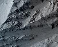 Six hundred recent observations of the Mars landscape from an orbiting telescopic camera include scenes of sinuous gullies, geometrical ridges and steep cliffs.