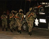 Sixteen gunmen, two soldiers killed in Acapulco clashesMexico City (AFP) June 7, 2009 Sixteen gunmen and two soldiers were killed during a confrontation early Sunday at the popular Mexican resort town of Acapulco, the National Defense Secretariat said. Army troops began receiving fire when they arrived on the scene late Saturday, following an anonymous tip, the secretariat said in a statement. The clash lasted several hours, during which "five people were arrested and ... read more |