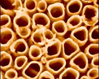 Washington DC (SPX) Apr 29, 2009 A research team from Northeastern University and the National Institute of Standards and Technology (NIST) has discovered, serendipitously, that a residue of a process used to build arrays of titania nanotubes - a residue that wasn't even noticed before this - plays an important role in improving the performance of the nanotubes in solar cells that produce hydrogen gas from water. Their recently published results indicate that by controlling the deposition of potassium on the surface of the nanotubes, engineers can achieve significant energy savings in a promising new alternate energy system. Titania (or titanium dioxide) is a versatile chemical compound best known as a white pigment. It's found in everything from paint to toothpastes and sunscreen lotions. Thirty-five years ago Akira Fujishima startled the electrochemical world by demonstrating that it also functioned as a photocatalyst, producing hydrogen gas from water, electricity and sunlight. In recent years, researchers have been exploring different ways to optimize the process and create a commercially viable technology that, essentially, transforms cheap sunlight into hydrogen, a pollution-free fuel that can be stored and shipped. Increasing the available surface area is one way to boost a catalyst's performance, so a team at Northeastern has been studying techniques to build tightly packed arrays of titania nanotubes, which have a very high surface to volume ratio. They also were interested in how best to incorporate carbon into the nanotubes, because carbon helps titania absorb light in the visible spectrum. (Pure titania absorbs in the ultraviolet region, and much of the ultraviolet is filtered by the atmosphere.) This brought them to the NIST X-ray spectroscopy beamline at the National Synchrotron Light Source (NSLS). The NIST facility uses X-rays that can be precisely tuned to measure chemical bonds of specific elements, and is at least 10 times more sensitive than commonly available laboratory instruments, allowing researchers to detect elements at extremely low concentrations. While making measurements of the carbon atoms, the team noticed spectroscopic data indicating that the titania nanotubes had small amounts of potassium ions strongly bound to the surface, evidently left by the fabrication process, which used potassium salts. This was the first time the potassium has ever been observed on titania nanotubes; previous measurements were not sensitive enough to detect it. The result was mildly interesting, but became much more so when the research team compared the performance of the potassium-bearing nanotubes to similar arrays deliberately prepared without potassium. The former required only about one-third the electrical energy to produce the same amount of hydrogen as an equivalent array of potassium-free nanotubes. "The result was so exciting," recalls Northeastern physicist Latika Menon, "that we got sidetracked from the carbon research." Because it has such a strong effect at nearly undetectable concentrations, Menon says, potassium probably has played an unrecognized role in many experimental water-splitting cells that use titania nanotubes, because potassium hydroxide is commonly used in the cells. By controlling it, she says, hydrogen solar cell designers could use it to optimize performance. Share This Article With Planet Earth