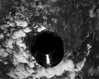 The sequence clearly shows the Planck-Sylda composite receding behind Herschel, high above the surface of our planet; clouds, ocean and coastlines can be seen far below. The Sylda is a support structure that encapsulated Planck and supported Herschel during launch.