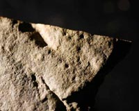 Columbus OH (SPX) Oct 07, 2008 The fossilized trail of an aquatic creature suggests that animals walked using legs at least 30 million years earlier than had been thought. The tracks -- two parallel rows of small dots, each about 2 millimeters in diameter -- date back some 570 million years, to the Ediacaran period. The Ediacaran preceded the Cambrian period, the time when most major groups of animals first evolved. Scientists once thought that it was primarily microbes and simple multicellular animals that existed prior to the Cambrian, but that notion is changing, explained Loren Babcock, professor of earth sciences at Ohio State University. "We keep talking about the possibility of more complex animals in the Ediacaran -- soft corals, some arthropods, and flatworms -- but the evidence has not been totally convincing," he said. "But if you find evidence, like we did, of an animal with legs -- an animal walking around -- then that makes the possibility much more likely." Soo-Yeun Ahn, a doctoral student at Ohio State, presented the discovery in a poster session at the Geological Society of America meeting Sunday in Houston. Coauthors included Margaret Rees of the University of Nevada, Las Vegas, and J. Stewart Hollingsworth of the Institute for Cambrian Studies. Babcock was surveying rocks in the mountains near Goldfield, Nevada, with Hollingsworth in 2000 when he found the tracks. "This was truly an accidental discovery. We came on an outcrop that looked like it crossed the Precambrian-Cambrian boundary, so we stopped to take a look at it. We just sat down and started flipping rocks over. We were there less than an hour when I saw it." The creature must have stepped lightly onto the soft marine sediment, because its legs only pressed shallow pinpoints into that long-ago sea bed. But when Babcock flipped over the rock containing those tracks, the low-angle sunlight cast the dots in crisp shadow. He immediately suspected that the tracks were made by an arthropod, such as one resembling a centipede or millipede, or by a leg-bearing worm. He couldn't be certain of the length of the creature, or the number of legs it had. But judging from the tracks, he guessed that it carried its centimeter-wide body on many spindly legs. In 2002, other researchers reported a similar fossil trail from Canada that dated back to the middle of the Cambrian period, about 520 million years ago. Another set of tracks found in South China date back to 540 million years ago. At approximately 570 million years old, this new fossil not only provides the earliest suggestion of animals walking on legs, but it also shows that complex animals were alive on earth before the Cambrian. Not many macroscopic fossils exist from that time because soft-bodied creatures are not normally preserved. Babcock is an expert in "exceptional preservation" -- the special chemical, physical and biologic conditions that enabled some soft-bodied creatures to fossilize. By knowing where to look in the geologic record, he has uncovered a menagerie of unusual fossils, from unusual echinoderms in Nevada to sulfur-eating bacteria in Antarctica. The shallow sea covering western Nevada 570 million years ago would have been a good site for exceptional preservation. The sediment surface was probably bound together by a microbial mat -- a cohesive carpet of bacteria and sediment grains. A creature's tracks could have been readily preserved when the animal pressed its legs into the sediment. Babcock says that he is "reasonably certain -- not 100 percent" that the fossil was made by a centipede-like arthropod or a leg-bearing worm. A fossil of the animal itself would be more definitive. He is going to continue looking in the same region of Nevada, but that is not the only potential site. Similar fossils might be found in the White Sea area of Russia, South Australia, Newfoundland or Namibia, where body fossils of Ediacaran organisms have been found. "I expect that there will be a lot of skepticism," he said about the discovery. "There should be. But I think it will cause some excitement. And it will probably cause some people to look harder at the rocks they already have. Sometimes it's just a matter of thinking differently about the same specimen." Related Links Ohio State University Darwin Today At TerraDaily.com