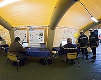 The demonstration covered two intervention scenarios. The first focused on a national situation where an industrial disaster has occurred and, as a consequence, the terrestrial communications infrastructure has been destroyed. In this instance, telecommunications satellite links are used to support coordination between the command post in the field and the regional crisis operations centre.