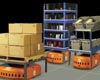 Two dozen squat robots scurry on the warehouse floor. They park underneath man-high inventory racks and activate a lifting mechanism that jacks the racks off the ground. One robot hauls shelves with 12-packs of Mountain Dew; another carries bottles of Redken shampoo.