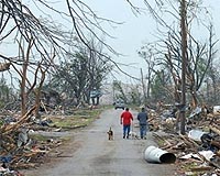Washington (AFP) May 26, 2008 At least eight people were killed in the midwestern United States Sunday as a series of tornadoes swept through the region leaving behind a wake of destruction, CNN television reported. The network said seven people were found dead in northcentral Iowa, in the towns of Parkersburg and New Hartford when a tornado passed at about 6:00 pm (2200 GMT). Marble-sized hail also fell over Waterloo, where authorities reported significant damage to homes, trees and power lines, the report said. Iowa Governor Chet Culver declared a state of disaster in three counties. Meanwhile, in Minnesota, a separate twister killed a two-year-old child and seriously injured nine other people in the Minneapolis-Saint Paul area, CNN said. Related Links Weather News at TerraDaily.com