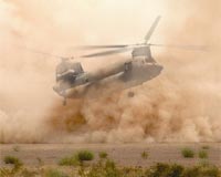 The sand, dirt and debris become airborne and can cause loss of pilot visual reference with the ground prior to touchdown, a condition known as "Brownout".