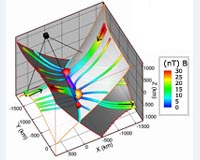 Paris, France (ESA) Aug 13, 2008 A 3-dimensional (3-D) "magnetic snapshot" of the heart of a magnetic reconnection region has been obtained in-situ by the four satellites of the ESA Cluster mission, at one-third of the distance to the Moon from Earth. The snapshot, constructed using a new analysis method, reveals for the first time a 3-D magnetic structure known as a magnetic null pair where two reconnection sites, or nulls, are magnetically linked. The rare occurrence of one of the Cluster satellites passing by one null of the pair has uncovered a new phenomenon where the electrons are temporarily trapped around that null. The electron trapping may ultimately lead to the formation of energetic electron beams, a well-known but poorly understood consequence of reconnection. These breakthroughs in the study of 3-D magnetic reconnection have been published in the Journal of Geophysical Research (16 May 2008) and Geophysical Research Letters (29 July 2008). Up until now, no method has been able to identify a pair of magnetic nulls simultaneously. A first attempt to detect such a null pair was reported last year by Xiao et al. in Nature Physics (see also: Cluster unveils a new 3D vision of magnetic reconnection). Based on Cluster observations, characteristics of two nulls identified at two different time instances were gathered to infer the properties of the combined null pair under the strong assumption that the characteristics of the null identified first remained unchanged until the second null was observed. In a paper published in the 29 July 2008 issue of Geophysical Review Letters (GRL), Dr. He (Peking University, China) and colleagues present for the first time the simultaneous identification of a magnetic null pair using a newly developed method which is detailed in a paper published in the Journal of Geophysical Research last May. This 3-D magnetic snapshot also reveals that the Cluster C2 satellite passed close to one magnetic null. This very rare occurrence provided a first opportunity to obtain rather detailed in-situ measurements of the physics in the inner reconnection region for such a magnetic configuration. In particular, simultaneous measurements of an electron density peak, an enhancement of high frequency electrostatic waves, as well as bi-directional energetic electron beams along the magnetic field were obtained. The theoretical implications of these findings are addressed in the GRL paper. The authors suggest a new scenario of electron dynamics in the null region: the thermal electrons are trapped in a cusp-like magnetic cavity in the inner region around the magnetic null pair. This electron trapping may be the cause of important reconnection electron dynamics such as electron acceleration, drifting and enhanced reconnection rate. "These results significantly improve our understanding of the 3-D reconnection process with a null pair structure. The observations and suggested scenario pave the way for future studies on reconnection, not only for space physicists but also for the astrophysical and laboratory plasmas communities, since the chance of such in-situ measurements is expected to be very rare", says Prof. Tu, Peking University, China, co-author of the papers. "The results will also provide a valuable reference for the NASA Magnetospheric Multiscale (MMS) mission and the ESA Cross-Scale mission. A primary goal of these future missions is to measure the 3-D geometry of the inner reconnection region. The results reported in GRL present new observations and an associated scenario in such a region for the first time", wrote Prof. Zong from Peking University and University of Massachusetts (Lowell, USA), co-author of the papers. "This is indeed precisely the aim of the Cross-Scale mission: studying the heart of magnetic reconnection by measuring the electron scale near the null with four spacecraft, as well as studying ion and fluid scales", says Philippe Escoubet, ESA Cluster project scientist and Cross-Scale study scientist. Related Links http://sci.esa.int/science-e/www/area/index.cfm?fareaid=8 Understanding Time and Space