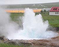 Two UC Davis geologists are studying the underground chemistry that creates this geyser found on an Icelandic farm. (Robert Zierenberg/UC Davis photo)