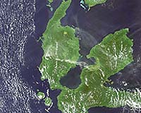 Indonesia's Mount Gamkonora volcano is spewing hot ash and smoke into the air, as seen in this image taken by the MERIS instrument aboard ESA's satellite Envisat, causing more than 8000 people to be evacuated amid fears of an imminent eruption, according to officials. Officials raised the alert to the highest level on Tuesday after the volcano, located in the eastern province of North Maluku, started spitting out flaming material, indicating magma was approaching the crater's surface making an eruption more likely, Saut Simatupang of Indonesia's Vulcanological Survey told Reuters news agency.