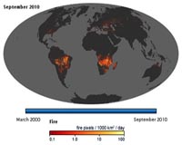 Modeling The Fiery Past And Future Of Planet EarthGreenbelt MD (SPX) Oct 28, 2010 Wildfires may seem like a fixed and unchanging force of nature. They're not. Over long time scales, research has shown that both the climate and humans have a profound effect on wildfire activity around the globe. Now new NASA research shows that while we have been suppressing this natural force for the past century, we may be, inadvertently, about to put nature back in control. Char ... read more |