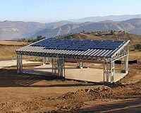 La Jolla CA (SPX) Sep 29, 2008 Envision Solar International announces the launch of its latest product designed to integrate clean power into buildings and communities. Envision Solar is claiming a trademark of the term and design of the LifeVillage, a modular self-contained "infrastructure in a crate" that can provide critical utilities in even the most remote areas of the planet. A demonstration project featuring the LifeVillage is planned for installation in Cote d'Ivoire, on the west coast of Africa. The LifeVillage concept includes Envision Solar's LifePort and LifePod modular steel-frame structures that include solar panels that provide between 1.5 and 4 kW of electricity, and also includes energy storage in the form of batteries to provide electricity outside of the hours when the sun is shining. Finally, the LifeVillage includes a self-contained water treatment unit that will capture and reuse water. The LifeVillage can be shipped in two shipping containers for assembly on-site. LifeVillage creators Robert Noble, AIA, LEED AP, and William Adelson, AIA, are sustainable architects based in La Jolla, California, who founded Envision Solar to create architectural solutions to facilitate the use of clean energy. "We were captivated by what occurred in Africa with the telecommunications industry," notes Adelson. "With the use of mobile telephones, the system is highly decentralized; effectively, satellite technology evolved more quickly than did the ability to install infrastructure in Africa." Noble adds, "The LifePort and LifePod products were always intended to be enabling technologies for photovoltaics and other clean technology. The LifeVillage, by including energy storage and water treatment, adds utility for an off-grid solution for remote areas without access to traditional infrastructure." "The LifeVillage structures can be used to create medical clinics, schools, housing for doctors and teachers, cell, mobile telephone, radio, TV, WiFi, and WiMax facilities and transmission. The combination of international building code engineered buildings, solar energy generation and battery storage provides all that is needed to improve health, safety, education, economics and general quality of life around every project or team has planned," Noble says. Each structure can be assembled and activated within two weeks of its arrival at the site. "The goal is to plant LifeVillages anywhere decentralized critical infrastructure is needed, starting in Western and Central Africa," comments Noble. Adelson adds, "We hope that the LifeVillage product will provide renewable energy and sustainable infrastructure for growth and advancement of underdeveloped areas." For the demonstration project in Cote d'Ivoire, Envision Solar partnered with ZBB Energy Corporation, a Wisconsin-based energy storage innovator. ZBB will provide their long-lasting ZESS-50TM zinc energy storage system. Other potential partners include Nucon Steel for the structure framing, Kyocera for the solar panels, McElroy Roofing for the standing seam metal roof and Worldwater and Solar Technologies for the water purification and pumping components. The demonstration project will provide critical community buildings, powered by solar energy with battery support, and with a self-contained water treatment system to allow occupants to recycle and reuse water. A prototype will be constructed in the United States and tested prior to deployment at one hundred villages in Cote d'Ivoire. The Cote d'Ivoire project, at the specific request of the country's Ministry of Energy, will incorporate a small medical clinic and a schoolhouse, including the housing for a resident doctor or nurse and the housing for a resident teacher. Envision Solar is partnering with Scripps Health and Hospitals of San Diego for the implementation of the clinic and its components. Related Links Envision Solar International All About Solar Energy at SolarDaily.com