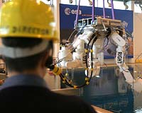Paris, France (ESA) Jul 05, 2007 Many of the best-loved science fiction movies show intelligent robotic servants working alongside their masters. Fiction is rapidly becoming fact as European engineers develop increasingly sophisticated machines that can operate in space. One of these, known as Eurobot, has just completed trials in the giant pool at the European Astronaut Centre. Eurobot has been under development since 2003, with the intention that the multi-jointed, three-armed assistant will eventually handle some of the more mundane tasks currently undertaken by astronauts. One possible use will be in helping astronauts during extravehicular activity (EVA), more commonly known as spacewalks, but the robot may also be an indispensable helper during human expeditions to the Moon or Mars. In the hostile conditions of space, the tireless Eurobot will save a great deal of time and effort by taking over various routine tasks. For example, the astronauts' flexible friend will be able to find its way to a work site on the International Space Station (ISS), perform a close-up inspection and carry out any initial preparatory work, such as the transfer of tools and equipment. Remotely controlled by an operator inside the ISS, Eurobot will be able to multi-task, providing additional hands and eyes for the spacewalkers. Once the astronauts are safely inside the Station, Eurobot will clear away the tools and equipment. "It could be a most useful aid," said Gianfranco Visentin, head of ESA's Automation and Robotics section. "There is a shortage of crew time during all missions, so anything that improves the use of astronaut time is very desirable." Former ESA astronaut Claude Nicollier, an expert in both EVAs and robotics, shares this point of view, "The support to EVAs is seen mainly in tasks such as worksite preparation, post-EVA cleanup and inspection." The version of Eurobot used in this week's exercises is an early prototype called the Weightless Environmental Test (WET) Model, which has been developed for operation in a 'Neutral Buoyancy Facility' - a water tank where the microgravity conditions found in space can be simulated. Developed for ESA by a consortium led by Thales Alenia Space, the WET Model is similar in size and configuration of the planned Flight Model. It consists of a central 'body' structure with three identical arms, each with 7 joints. Although the arms' length and strength are similar to those of a human, they are much more manoeuvrable and versatile. In addition, each arm is equipped with a camera and an end-effector which acts as a hand. The WET model has only one type of hand, which is capable of grasping EVA handrails. In contrast, the real Eurobot will have a set of 3 or 4 interchangeable hands. A head camera on a pan and tilt mechanism provides a global monitoring view of the worksite. In the latest trials, the WET Model was used to verify the operational concept for Eurobot. During tests of its ability to move and manipulate objects, the project team gained hands-on experience of the robot's capabilities, trying out multi-arm control and coordination, along with visual recognition of obscured targets. Eurobot was joined in the EAC pool by ESA astronaut Jean-Fran�ois Clervoy to demonstrate the interaction between astronaut and robot. The trials at the European Astronaut Centre (EAC), in Cologne, Germany, conclude the initial verification phase of the Eurobot Wet Model programme, following on from previous preliminary dry and wet tests in Italy. "The tests went very well", said Philippe Schoonejans, ESA's Eurobot Project Manager. "Not only has it been demonstrated that Eurobot can walk around an orbital station autonomously and safely, using no more than the existing EVA handrails, it is also becoming clear that Eurobot can really help the astronauts. And in the next phase we also plan to demonstrate its use in on a planetary surface, as part of the Agency's exploration programme." While the testing of the WET model makes it possible to study the operational aspects of Eurobot, ESA has undertaken a comprehensive programme to further its technological development. This includes engineering models of the robot arms (called DexArm) and tool exchange device (CTED); the computer vision technology that allows Eurobot to identify and grasp objects (VIMANCO); the central brain that allows coordination of the robot arms' motion (CONTEXT); a sophisticated human-machine interface that allows tele-operation of the DexArm (Exoskeleton); and a control station that is used to program and control the Eurobot (A-DREAMS). All of these are being integrated in the Eurobot test bed located at ESA's Space Research and Technology Centre (ESTEC) in Noordwijk, the Netherlands. Related Links Eurobot Testbed All about the robots on Earth and beyond!