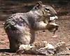 California ground squirrels and rock squirrels chew up rattlesnake skin and smear it on their fur to mask their scent from predators, according to a new study by researchers at UC Davis. Barbara Clucas, a graduate student in animal behavior at UC Davis, observed ground squirrels (Spermophilus beecheyi) and rock squirrels (Spermophilus variegates) applying snake scent to themselves by picking up pieces of shed snakeskin, chewing it and then licking their fur.