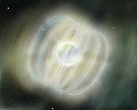 Paris, France (ESA) Sep 21, 2007 ESA's XMM-Newton, has provided new insight into puzzling celestial objects known as magnetars. Thanks to the orbiting X-ray observatory, astronomers have traced powerful explosions to a region just beneath a magnetar's surface. Magnetars are small neutron stars that occasionally suffer extraordinarily powerful outbursts which shine X-rays across the galaxy. In 2003, astronomers saw a neutron star brighten to around 100 times its usual faint luminosity. This outburst allowed them to discover XTE J1810-197. Detecting pulsations from the source helped classify it as the first transient anomalous X-ray pulsar (AXP). The massive outburst moved it to the rank of magnetar. Magnetars are perplexing objects. Each one is the highly magnetic core of a star that was once at least eight times more massive than the Sun. When it exploded as a supernova, the core was compressed into a highly compact object, a neutron star, roughly fifteen kilometres in diameter, but containing about as much mass as the Sun. Some of these neutron stars possess the most powerful magnetic fields in the Universe, leading to extremely energetic eruptions that send high-energy radiation cascading across space. Astronomers have never been certain whether the outbursts come from the surface of the magnetar itself, or the clouds of electrically charged particles trapped in the surrounding magnetic field. Now, using data from XMM-Newton, Tolga Guver, Istanbul University, and his colleagues have analysed the X-ray spectrum of XTE J1810-197 using a computer model that incorporates emission from the magnetar's surface with its subsequent processing as it travels through the object's magnetic field. This is the first time both regions of a magnetar have been put together in the same computer model. XMM-Newton observed XTE J1810-197 seven times between 9 August 2003 and 12 March 2006 using XMM's European Photon Imaging Camera (EPIC) on board XMM. During that time, the object faded back to normal brightness, and EPIC recorded the changes in the energies of the X-rays released as it did so. These changes are particularly valuable to astronomers because they can be compared with computer predictions. Guver and colleagues found that the data were best fitted with a model that traced the outburst to just below the surface of the magnetar and confined it to an area about 3.5 km across. This is a breakthrough because, "Assuming our model is confirmed, we can now distinguish between surface and magnetopheric phenomena," says Guver. Their model also allowed them to determine the strength of this object's magnetic field spectroscopically. It is around six hundred million, million times stronger than Earth's magnetic field. Encouragingly, this measurement is similar to an estimate made previously for this object based on how fast its spin is slowing down. This boosts the team's confidence that their model is correct. Nevertheless, they are not being complacent about their work. "This model will not be the final one about magnetars but it does give us a new point of view onto these fascinating objects," says Guver. One thing that remains unclear is the nature of the outburst. It is probably triggered magnetically but exactly how, is still a mystery. The team now plan to use their computer model to investigate more of these celestial objects, using more data from XMM-Newton, in their quest for answers. 'The Magnetar Nature and the Outburst Mechanism of a Transient Anomalous X-ray Pulsar' by T. Guver, F. �zel, E. Gogus and C. Kouveliotou is due to be published in The Astrophysical Journal, on 20 September 2007. Related Links XMM-Newton in depth Stellar Chemistry, The Universe And All Within It