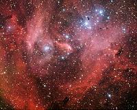 A new image from the Wide Field Imager on the MPG/ESO 2.2-metre telescope reveals the Lambda Centauri Nebula, a cloud of glowing hydrogen and newborn stars in the constellation of Centaurus (The Centaur). The nebula, also known as IC 2944, is sometimes nicknamed the Running Chicken Nebula, from a bird-like shape some people see in its brightest region. In the nebula, which lies around 6500 ... read more